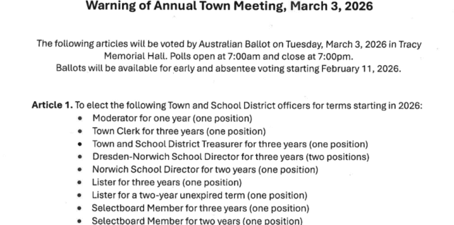 March 3 is Town Meeting. With that in mind, I asked the announced Selectboard candidates two questions on the listserv, one about the Finance Committee and the other about Town Manager goals. Here are the questions and their verbatim listserv responses. QUESTION. In April 2025, the Selectboard amended the Finance Committee’s charge, removing its role to provide ‘independent advice’ to the Selectboard on the annual Town budget and eliminating the requirement to provide budget information to voters. The revised charge Continue reading Selectboard Candidate Responses: Finance Committee & Town Manager Goals